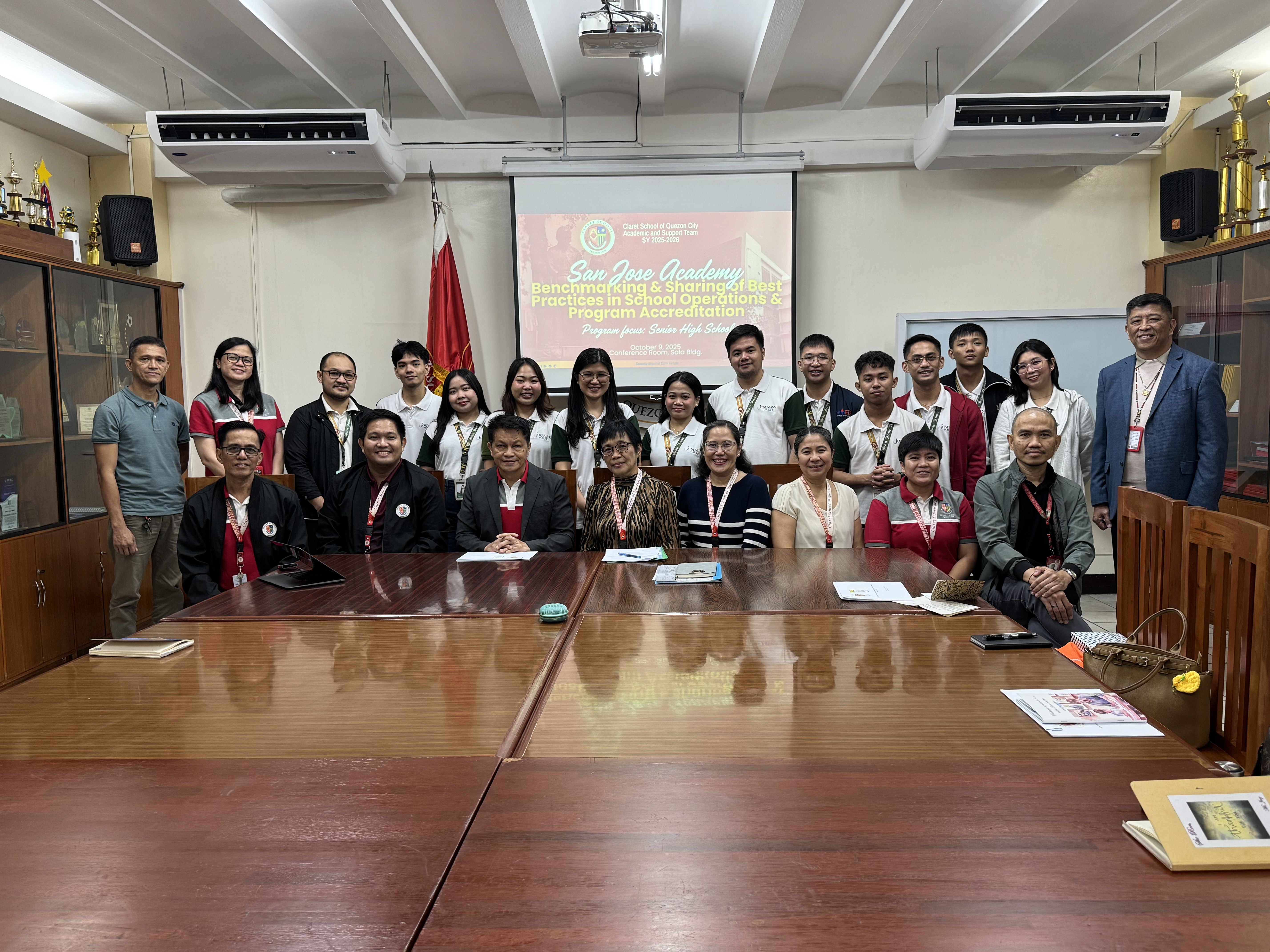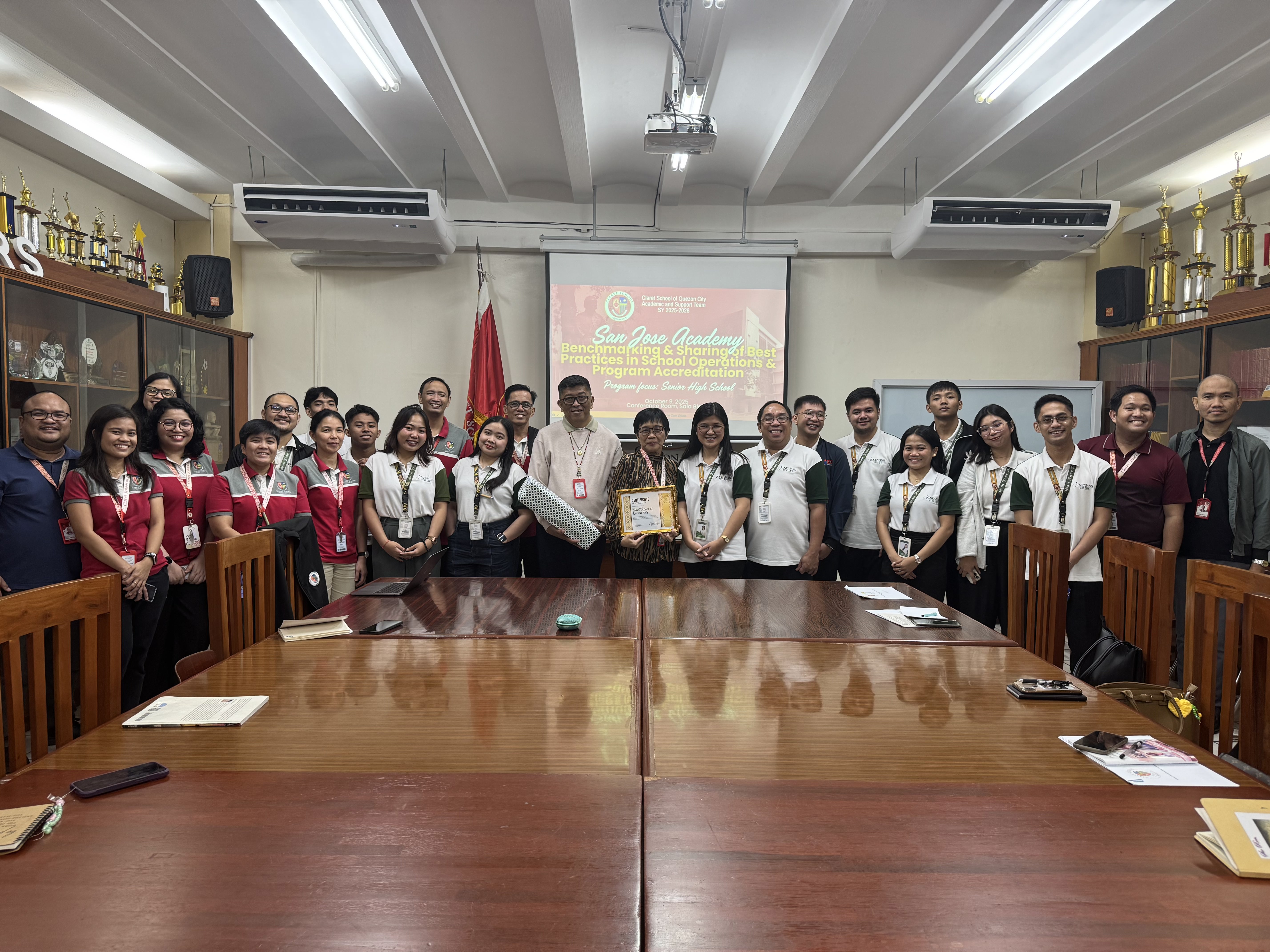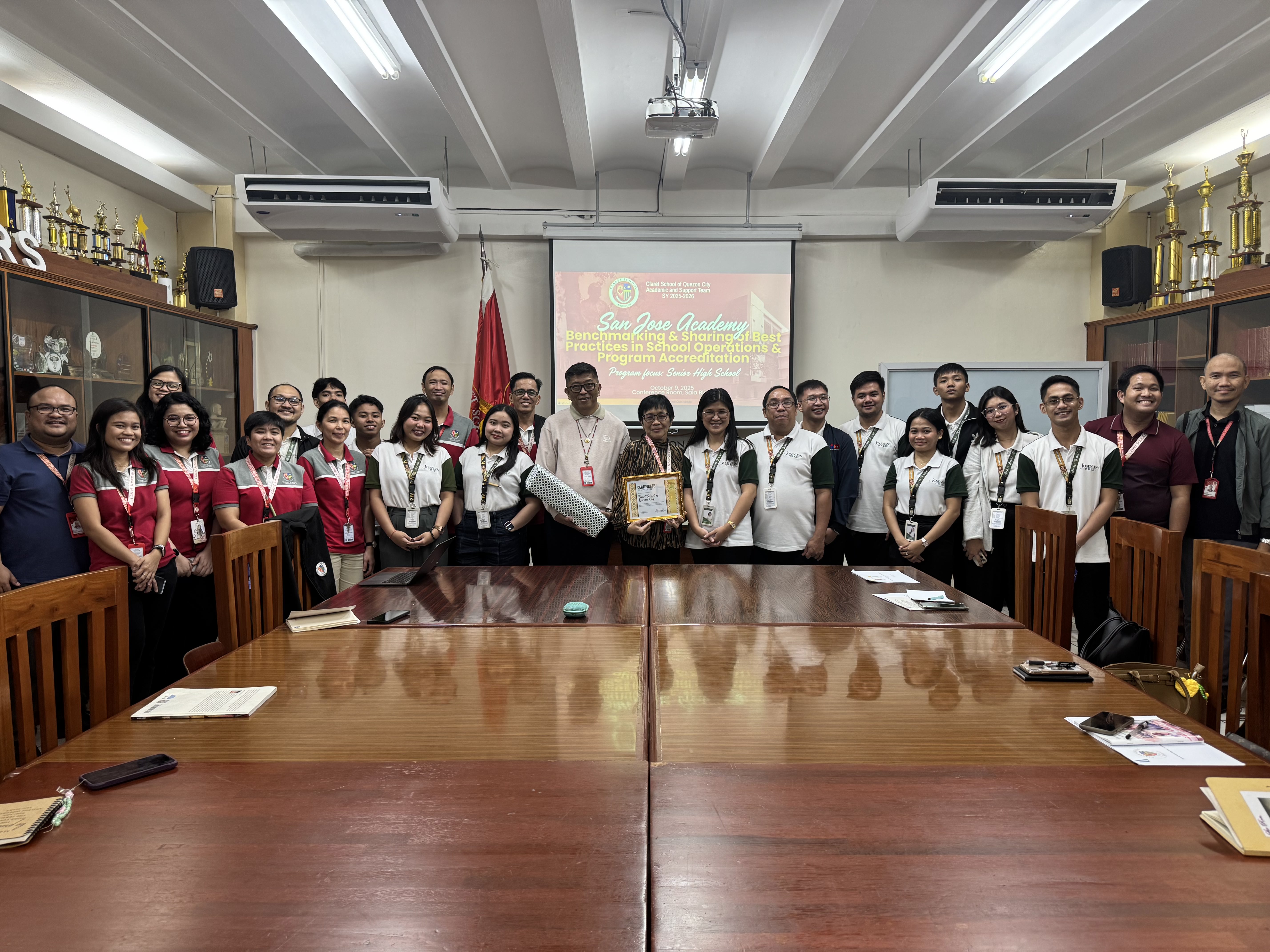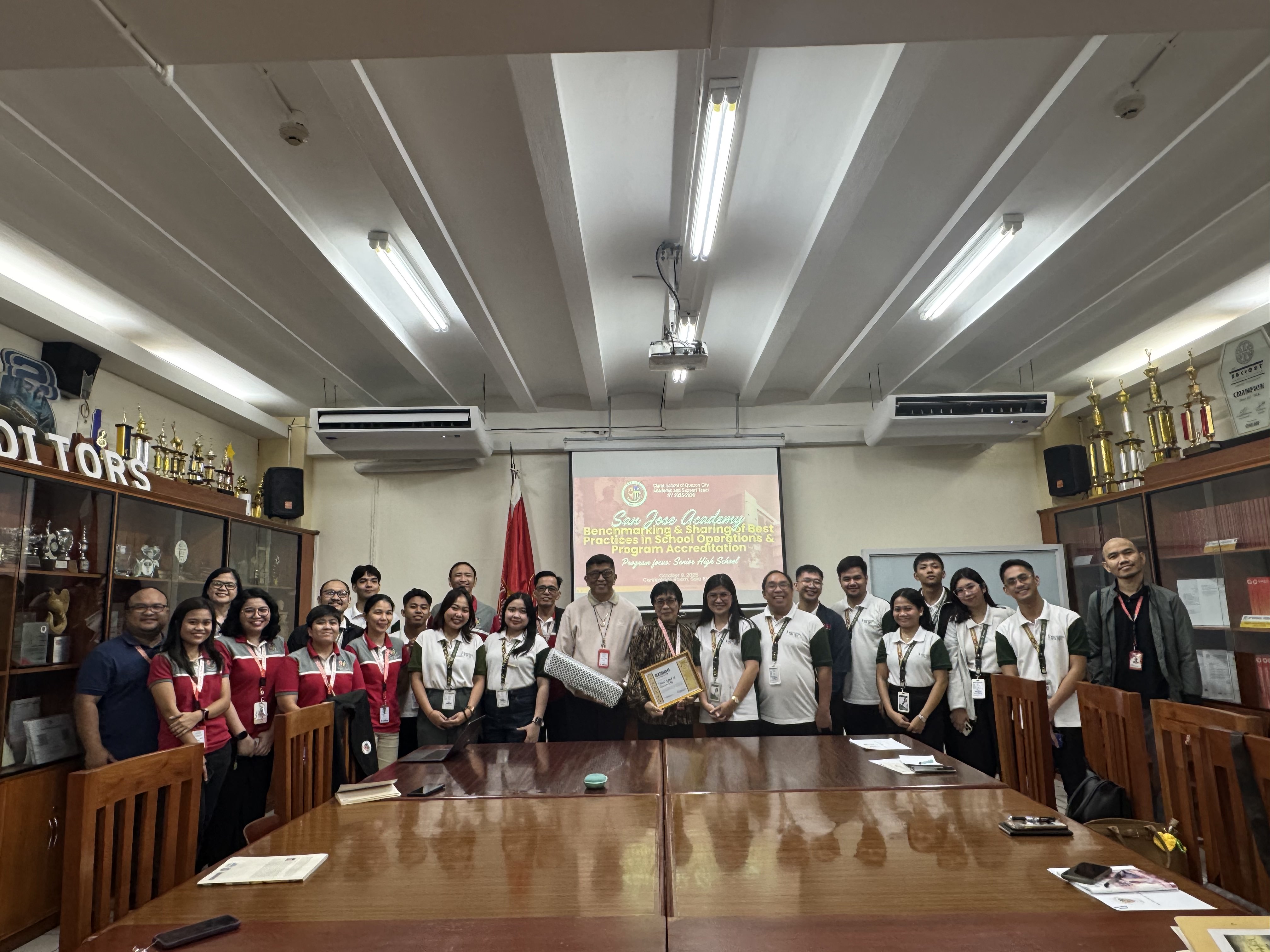 On October 9, 2025, Claret School of Quezon City warmly welcomed San Jose Academy (SnJA) from Navotas City for a school visit and benchmarking activity. The delegation, composed of 13 faculty and school administrators, focused on exploring CSQC’s Senior High School program.