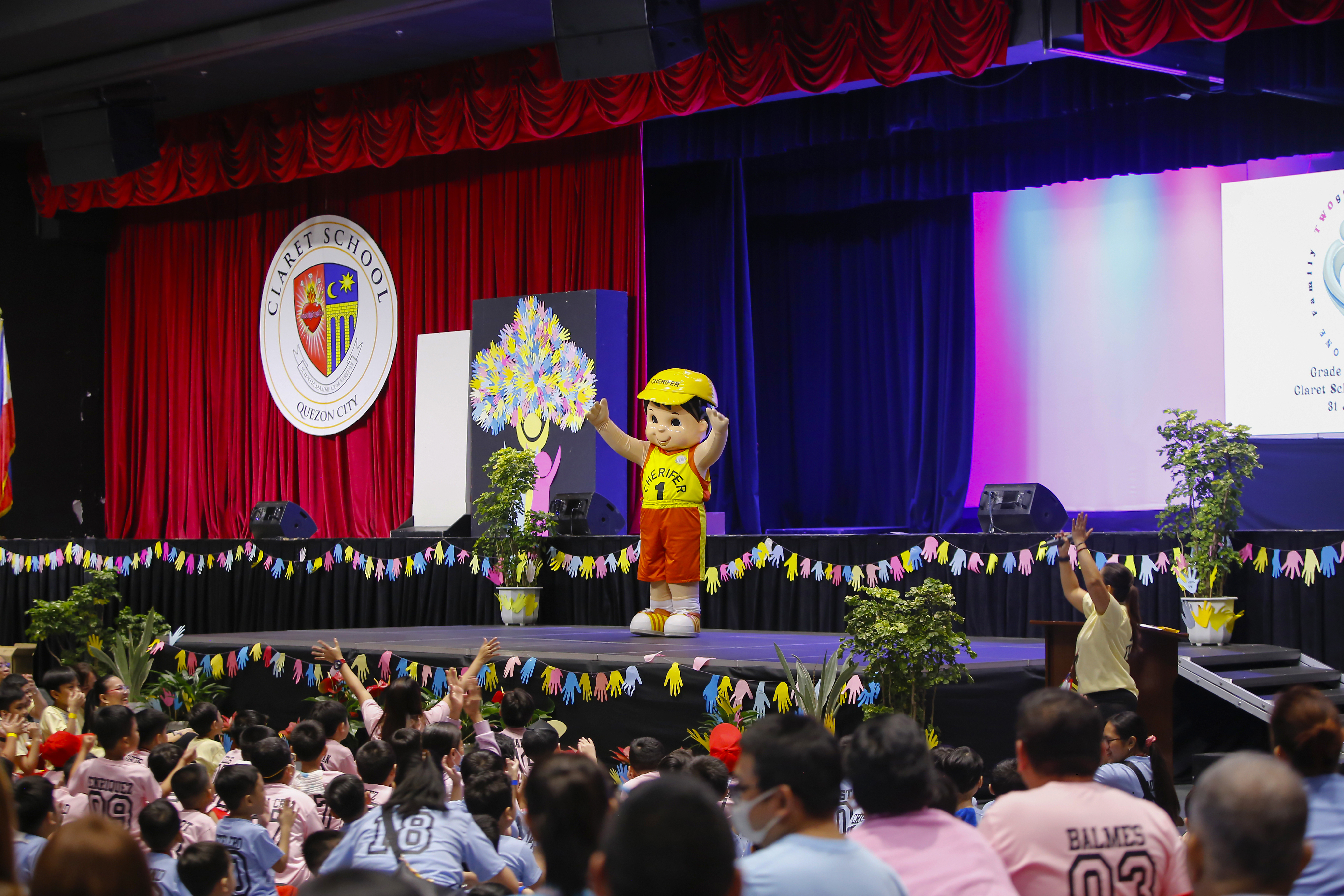 After a short break, the program proper opened with the singing of the Philippine National Anthem and welcome remarks from the School’s energetic principal, Mrs. Evelyn B. Angeles, MAT. The crowd was delighted by a surprise performance from Mascot Cherifer, followed by a lively warm-up exercise led by Mommy Nesh Zamora, an aerial instructor, and her son, Franco, from Grade 2–Patience.