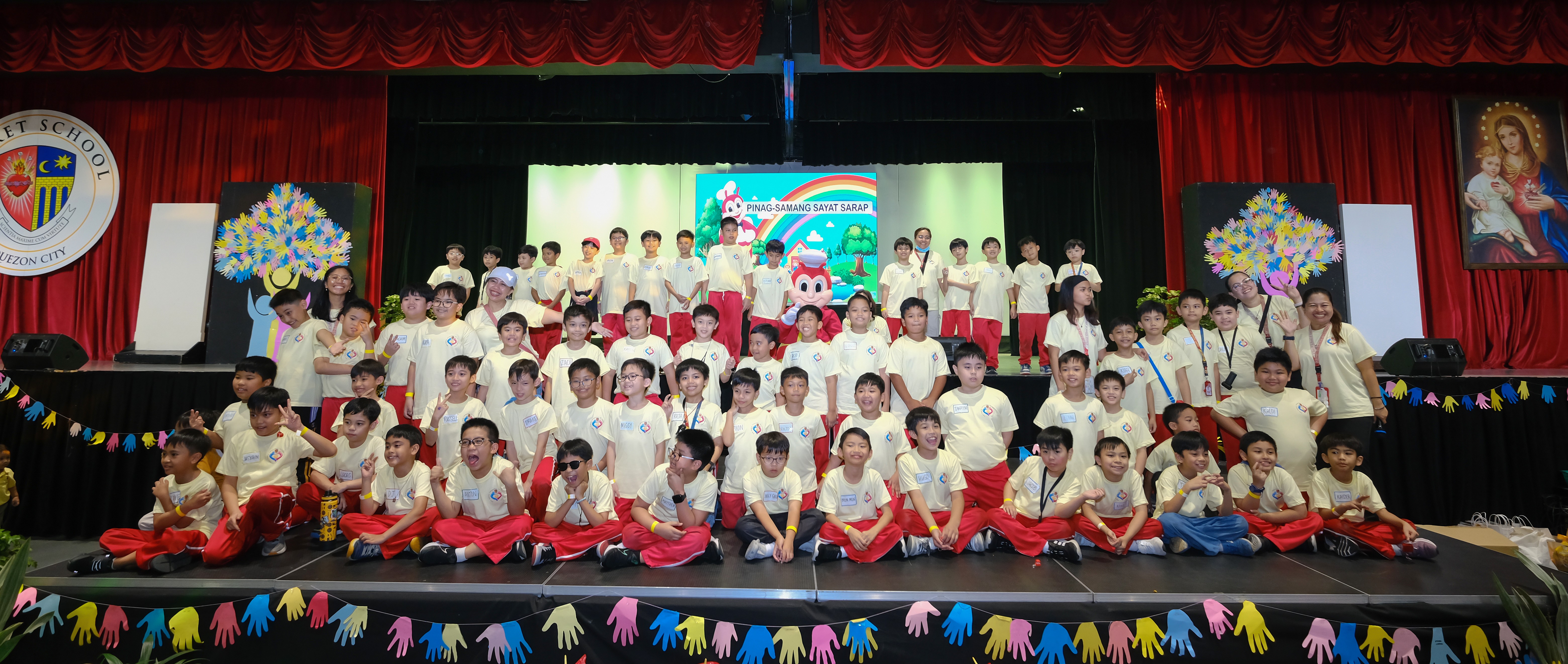 After lunch, the program resumed with vibrant performances from the Clare Olé Duo, Clara and Olly, and the talented Dance Squad of Grades 2 and 3, moderated by Ms. Reneth F. Epino. Major prizes were also given per level. A special highlight was the surprise visit from Jollibee, which brought smiles and joy during the photo opportunities at each level.