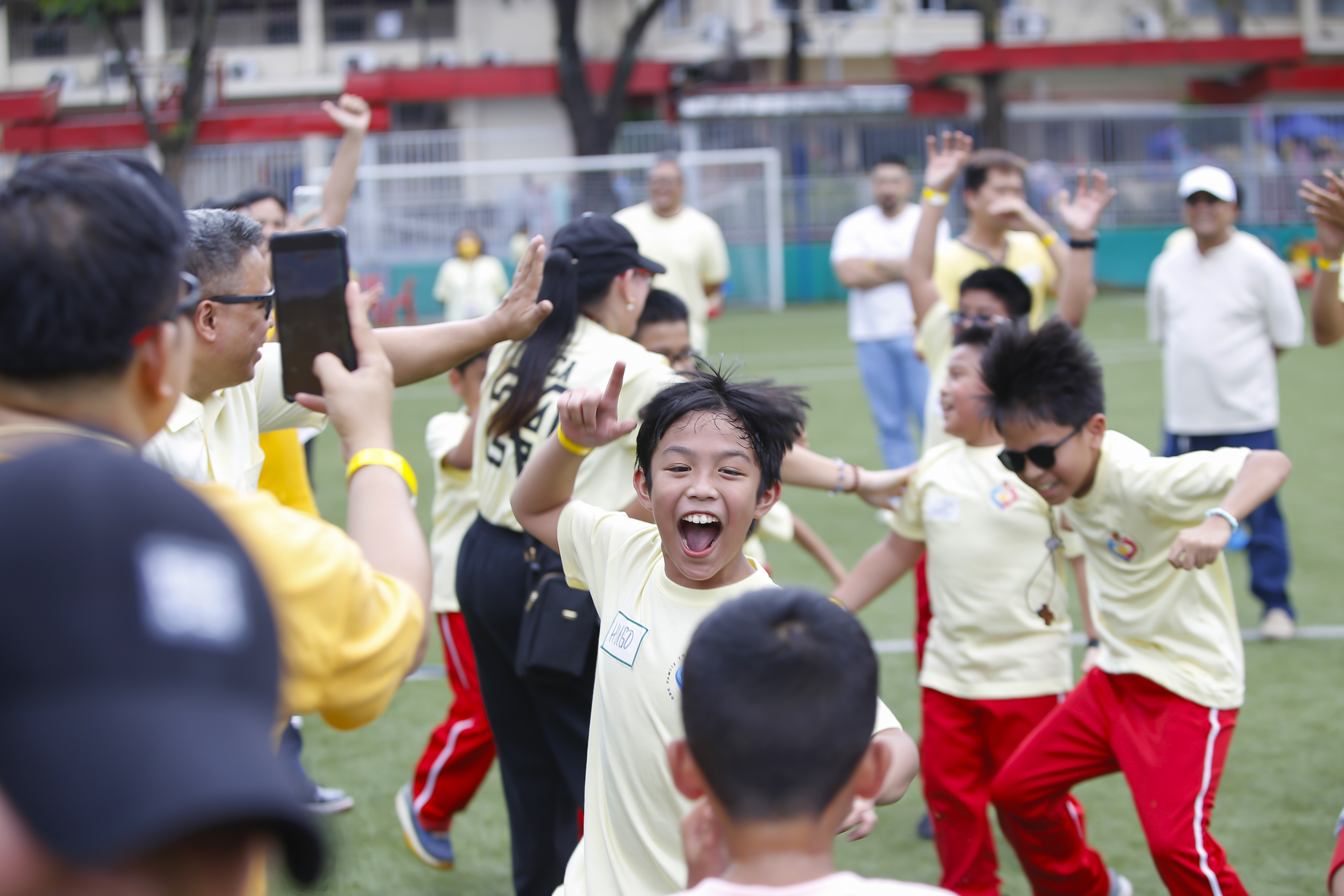 After a short break, the program proper opened with the singing of the Philippine National Anthem and welcome remarks from the School’s energetic principal, Mrs. Evelyn B. Angeles, MAT. The crowd was delighted by a surprise performance from Mascot Cherifer, followed by a lively warm-up exercise led by Mommy Nesh Zamora, an aerial instructor, and her son, Franco, from Grade 2–Patience.