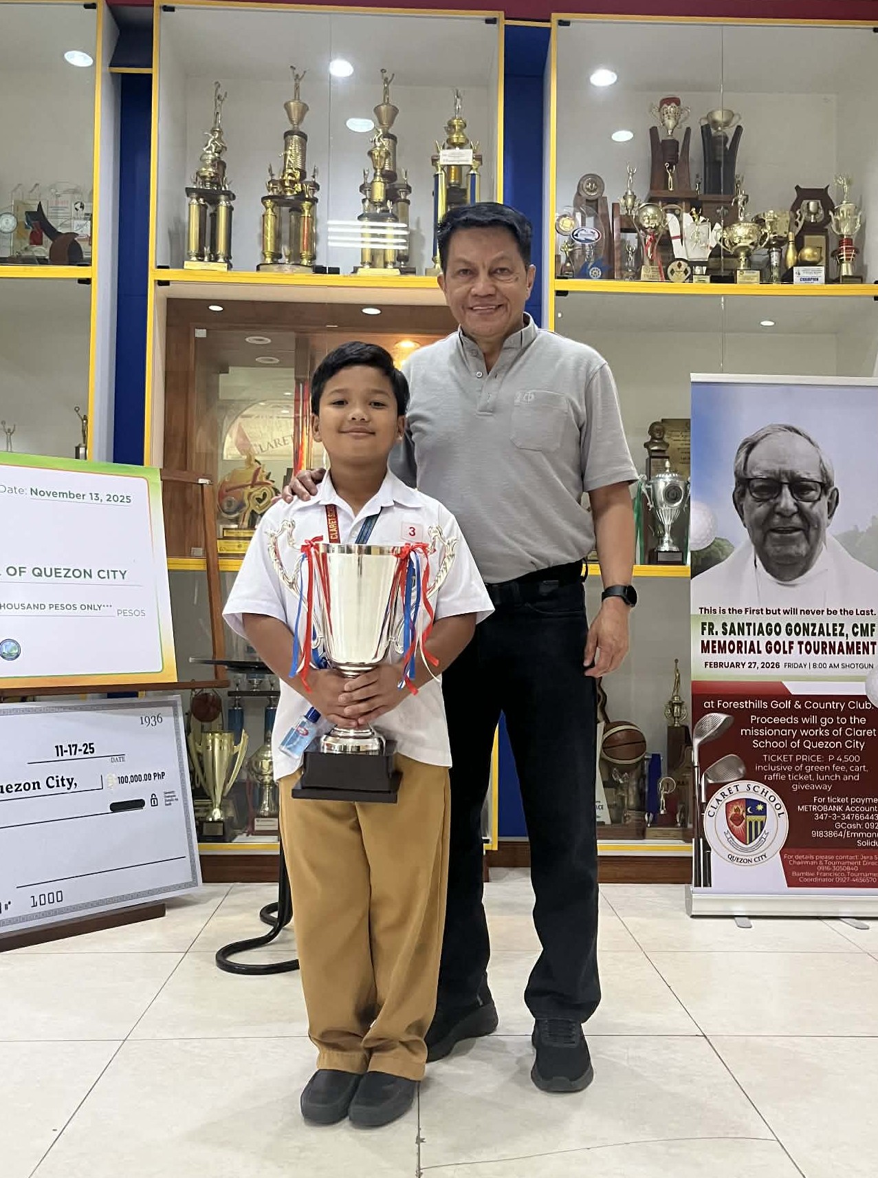 Michael Drake D. Matias with Fr. Victor F. Sadaya, CMF, School Director